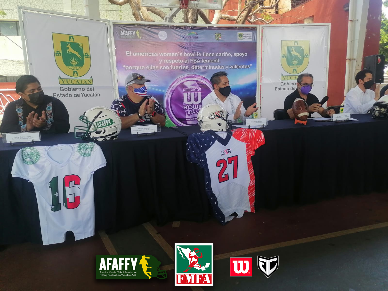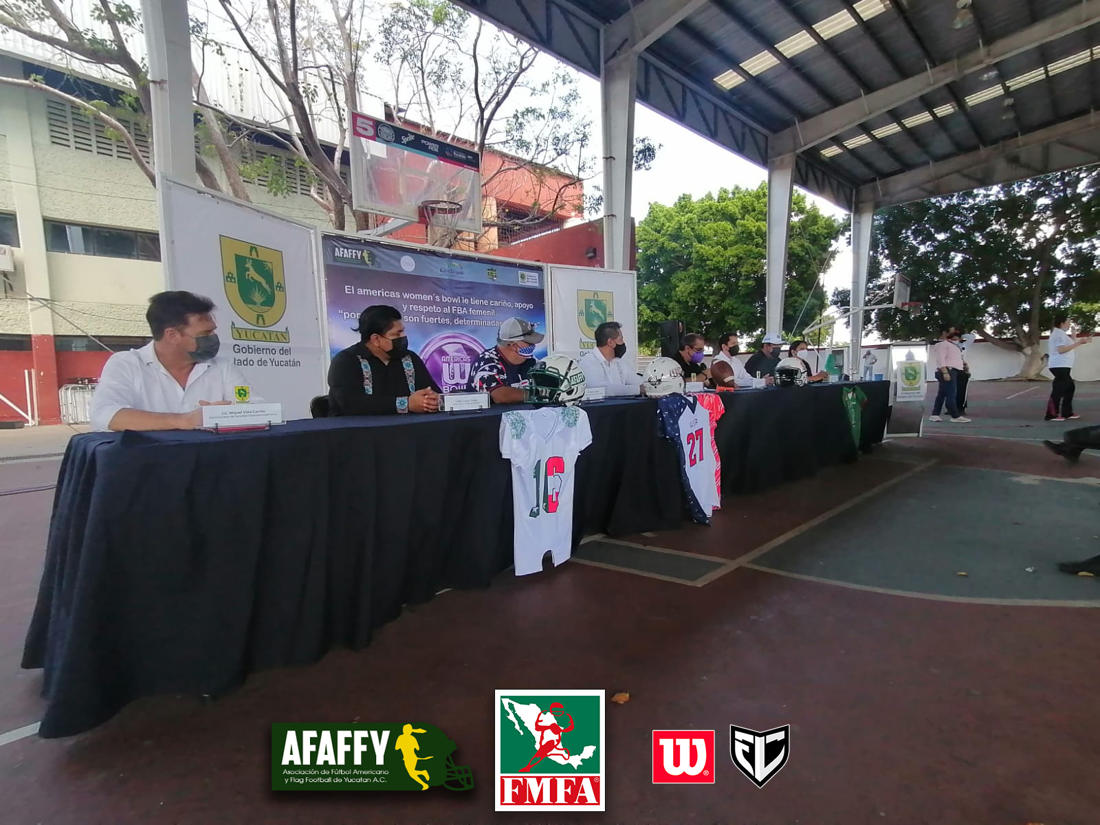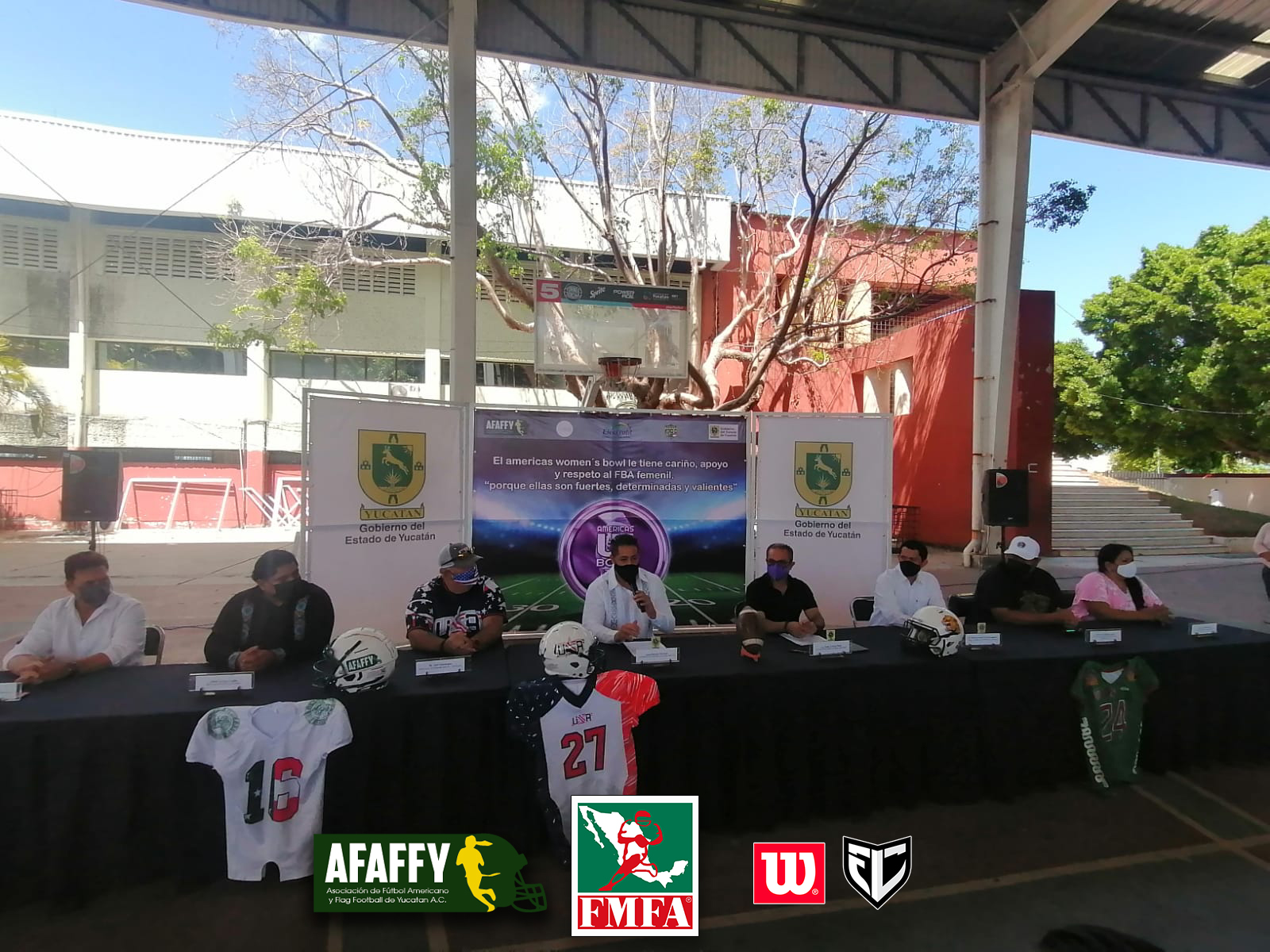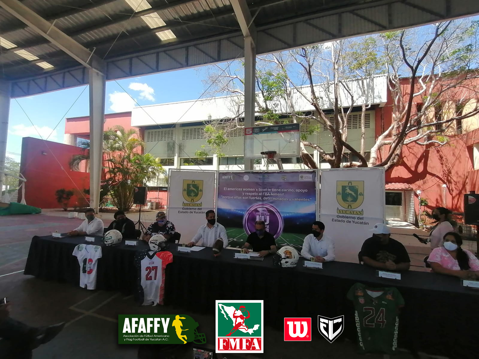 Conferencia de prensa en el IDEY, anuncian el Américas Womens Bowl, donde participan jugadoras de un selectivo de USA, Guerreras Jaguar, un combinado de la zona sur del país y un selectivo de Merida y Cancun