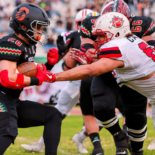 El sabado 13 de diciembre , se llevó a cabo con gran éxito el juego de fútbol americano entre los paises MEXICO y CANADA , de la categoria Senior en el estadio WILFRIDO MASSIEU.