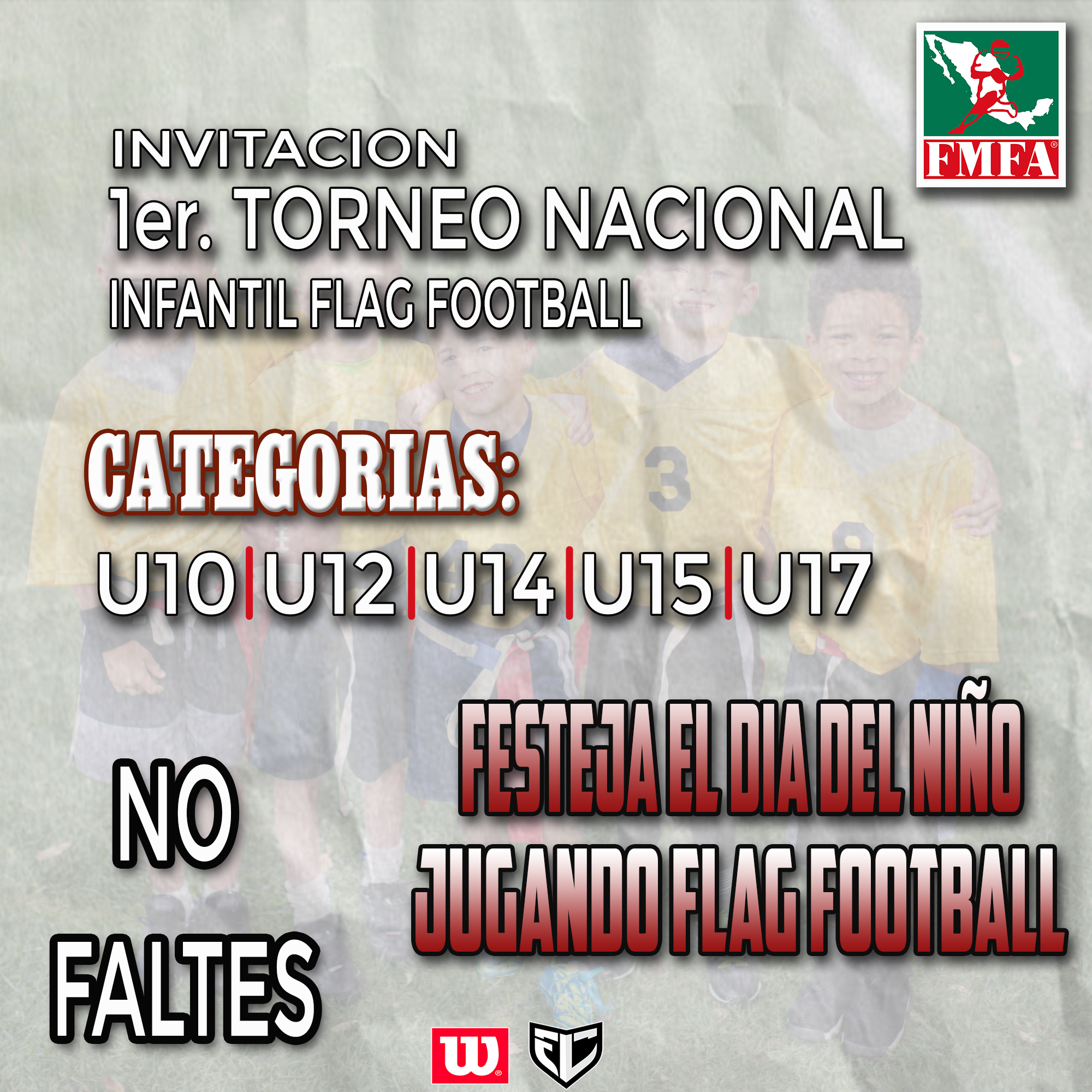 Esta lista la convocatoria para el 1er Nacional Infantil de Flag Football, excelente para Festejar el Día del Niño, habrá Parque Acuático mientras esperas tu siguiente juego, solo equipos federados, ahí nos vemos.