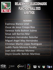 LISTA PRESELECCIONADOS FLAG FOOTBALL 2023